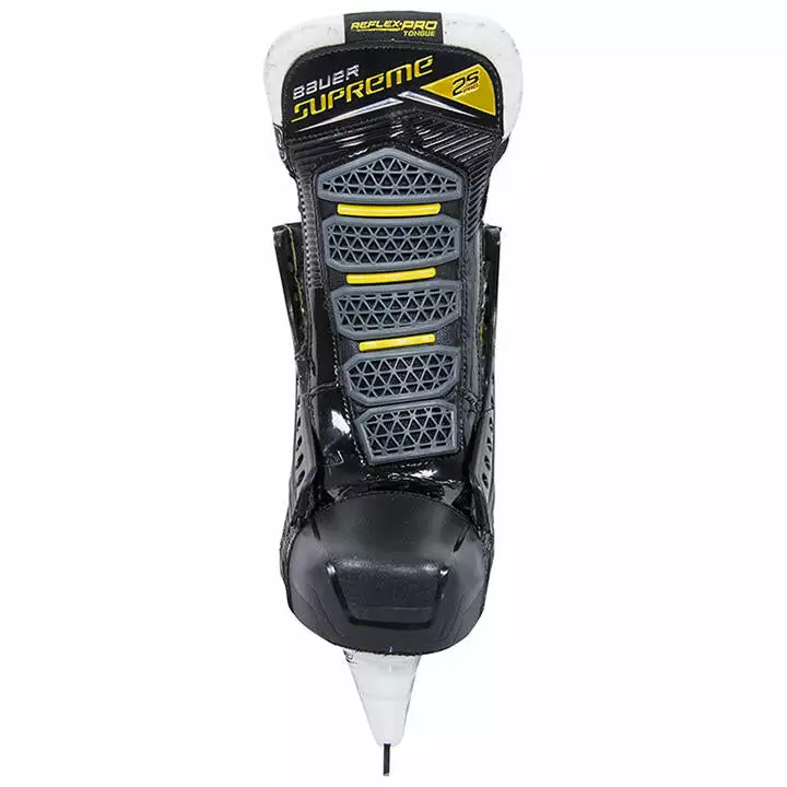 The Supreme 2S Pro skates have Bauer’s Reflex Pro tongue, which is a 3-piece 52oz felt tongue with moldable inserts for the best custom protection against slashes, puck contact, and lace bite, without sacrificing comfort. The felt construction of the Reflex Pro tongue will add to the comfort against your shins if you’re tucking in your skate tongues while simultaneously adding to the shin protection required for blocking shots.