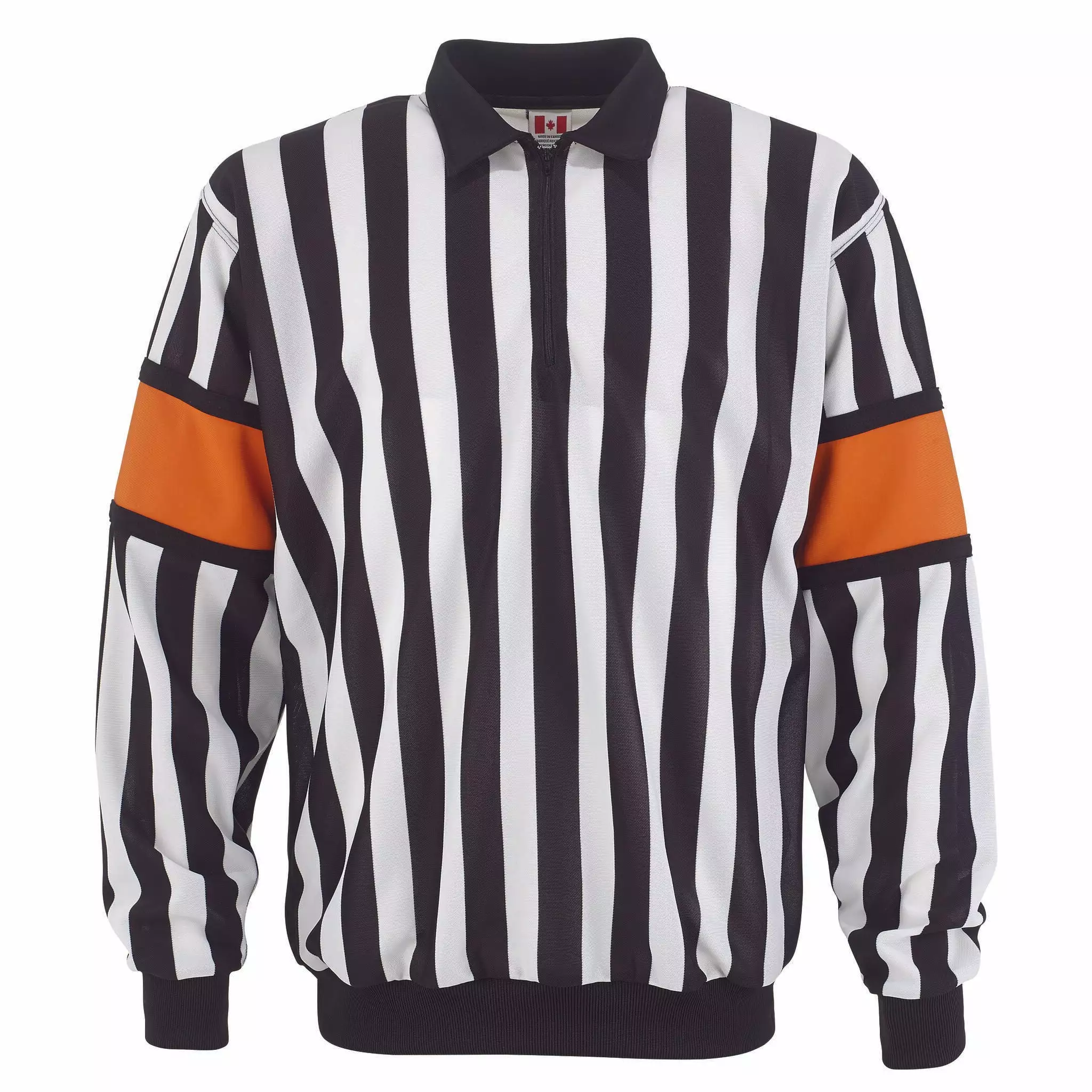 - LOGO: CCM EMBROIDERED LOGO ON BACK HEM – 1/2 zip pull over, sewn on orange or red armbands.