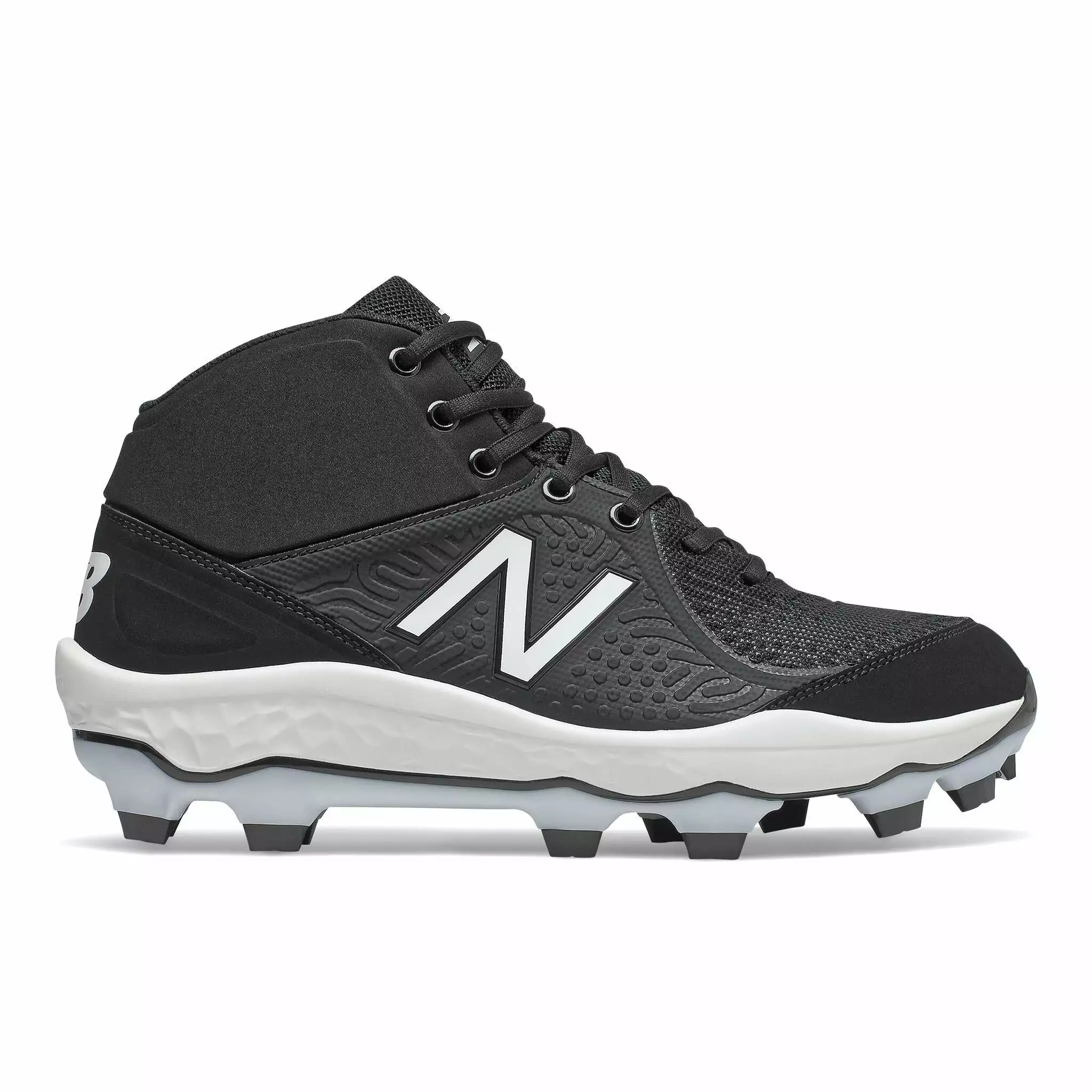 Whether you are sprinting to home plate or racing through the outfield to make a superhero catch, the Fresh Foam 3000v5 Mid-Cut men’s baseball cleats offer the traction and support necessary for high-pressure games. Sitting atop a molded plate, the mesh upper features a comfort collar and reaction-diffusion design based on movement data. For added comfort, the FRESH FOAM EVA midsole ensures optimal comfort, even for games that go into extra innings.
