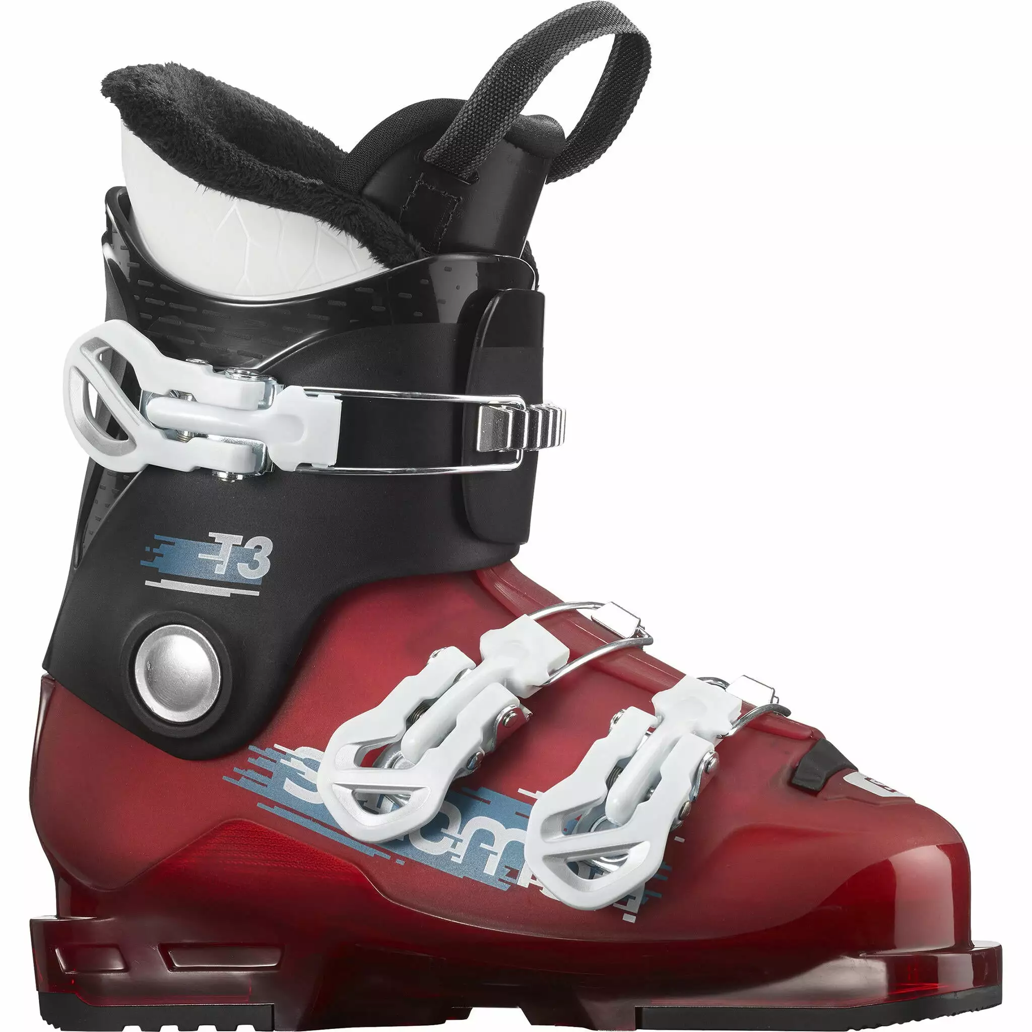 Salomon T3 RT Junior helps kids improve fast so they have more fun. It has a thin shell so it flexes for kids, it’s easy to put on and take off, and Oversized Pivot makes it ski well.